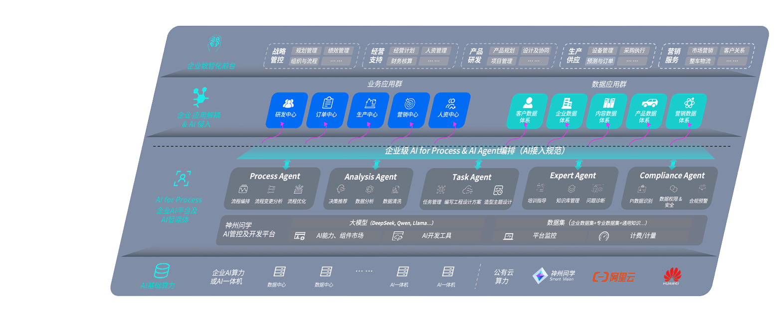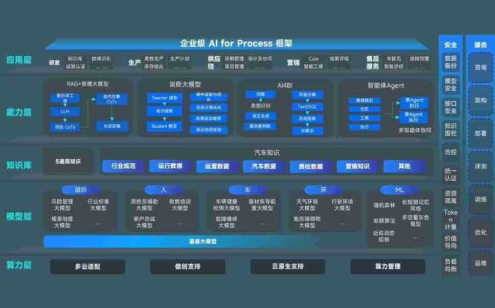 端到端的一站式AI工作空间深度融合了从企业战略规划到日常经营的全流程业务板块,,,,定向解决车企内部领域多、、部门多、、、、链条长、、、、场景碎片化等难题,,支持车企快速构建以AI为核心的生产力写作体系,,,实现任务执行与AI能力的无缝集成与交互